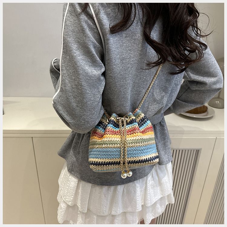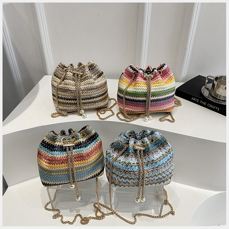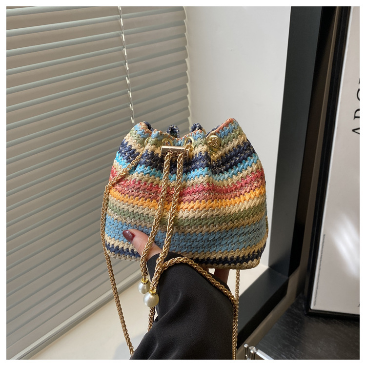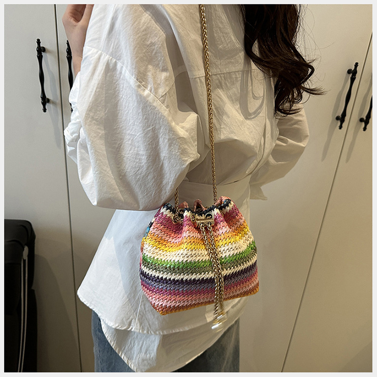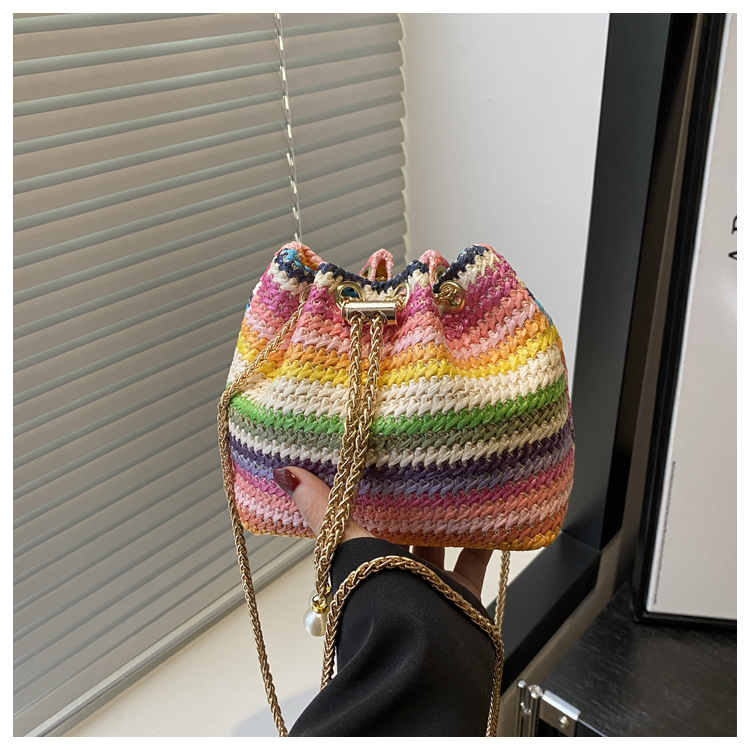 Le sac Ella combine un style décontracté et raffiné, avec des touches modernes pour apporter une touche bohème à votre look quotidien. Ce sac à main de type seau en tressage de paille est orné de couleurs multicolores vibrantes, parfait pour égayer vos tenues de saison. Que vous soyez en vacances, en ville ou lors d'une sortie entre amis, il est le compagnon idéal .