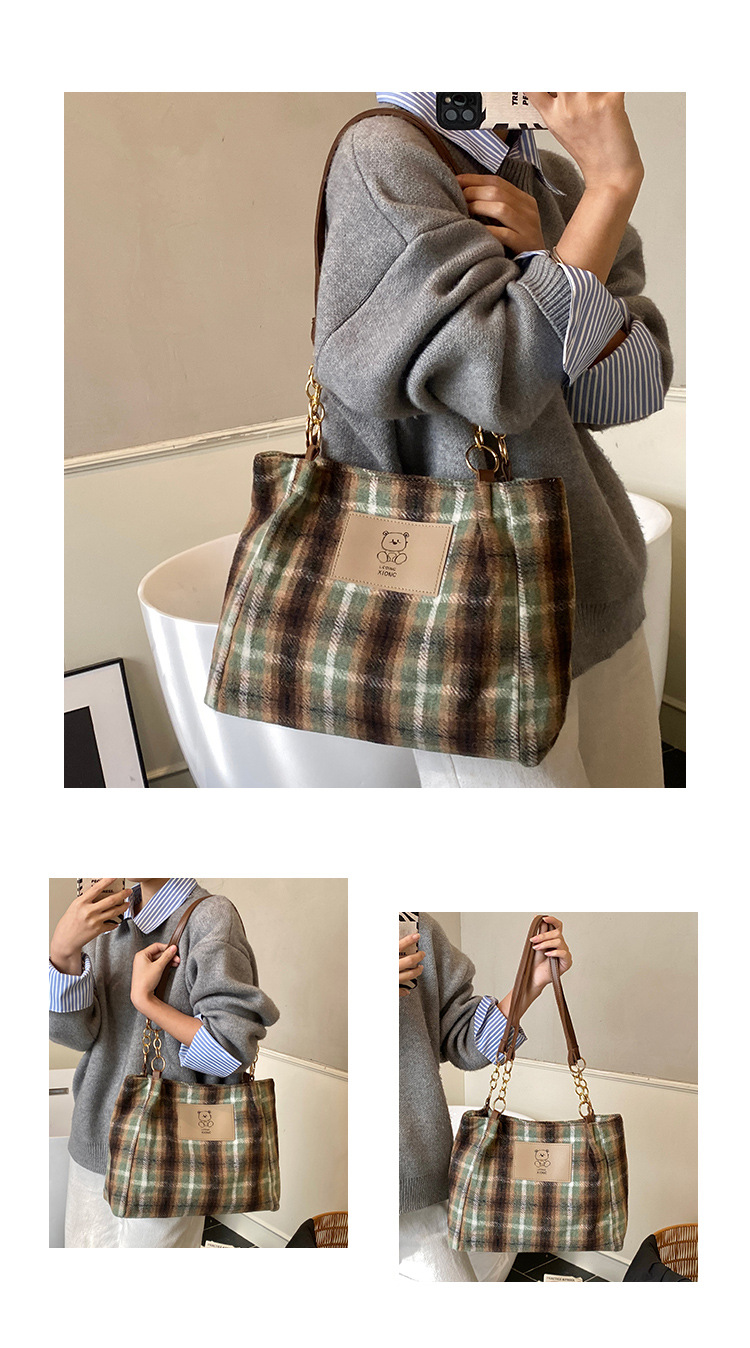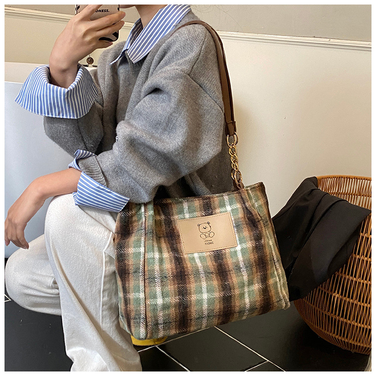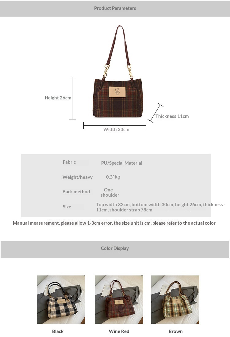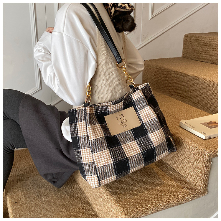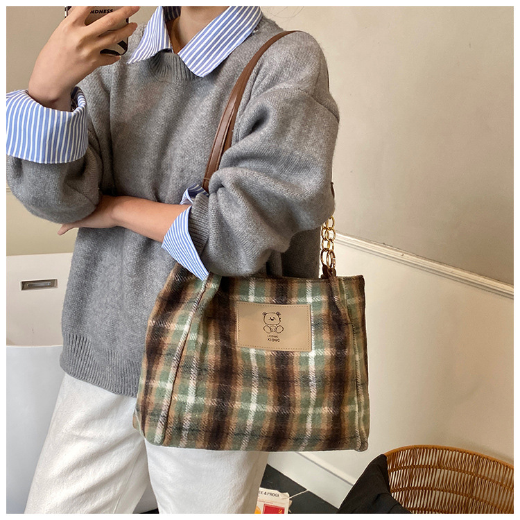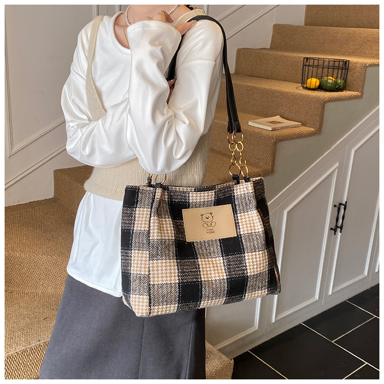 Wool Plaid Women's Single-Shoulder Commuter Bag With Large Capacity