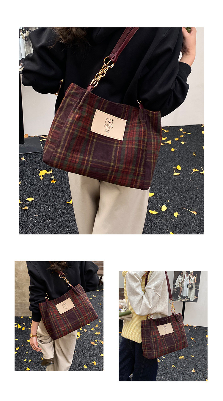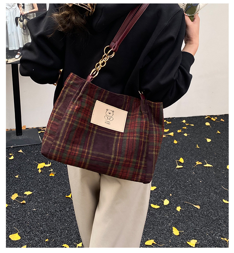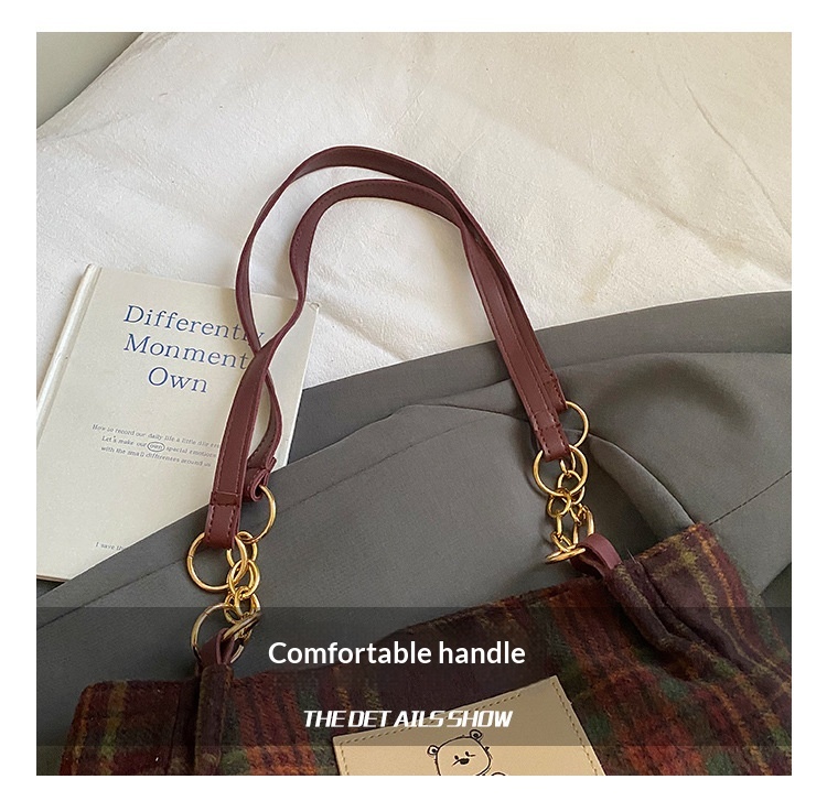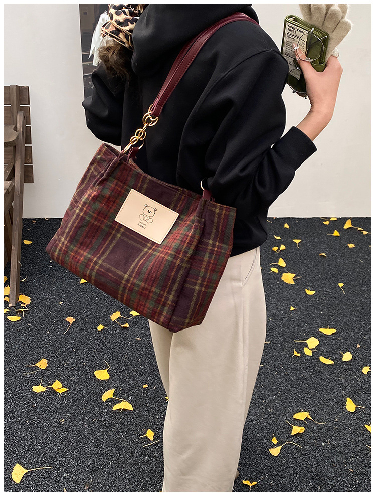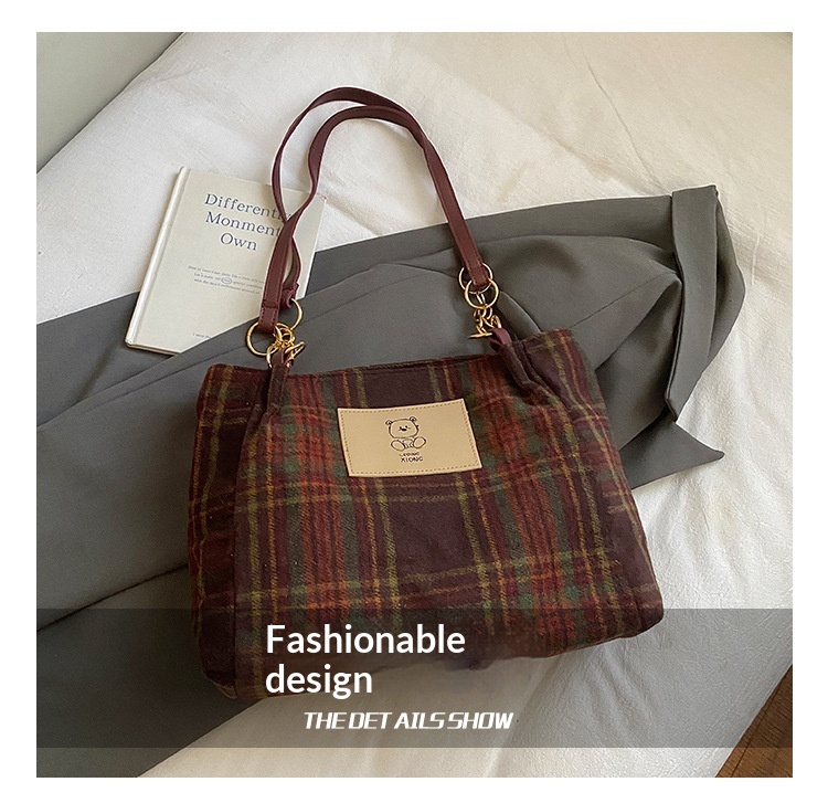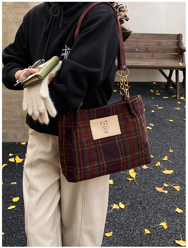 Wool Plaid Women's Single-Shoulder Commuter Bag With Large Capacity